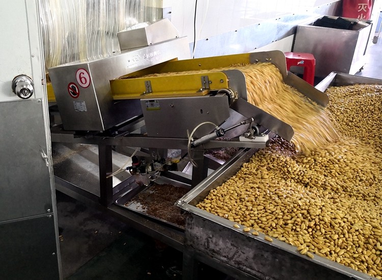 傻二哥定制的連之新第一代斜坡式炒花生高溫出料金屬檢測機(jī):