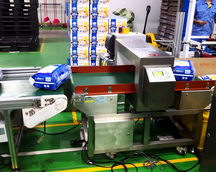 以下為漢氏衛生用品紙尿褲生產線使用連之新金屬檢測機的部分現場: